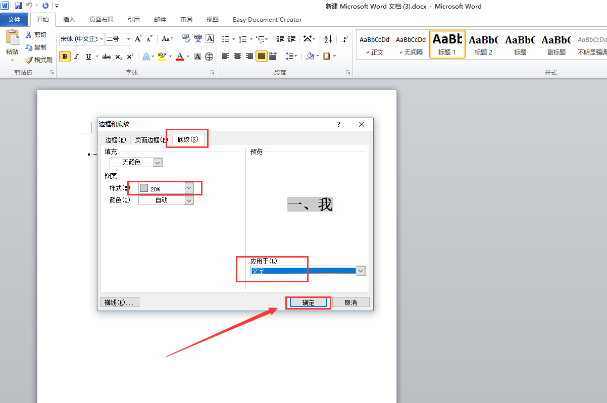 word文档中标题文字加上灰---20%底纹怎么弄
