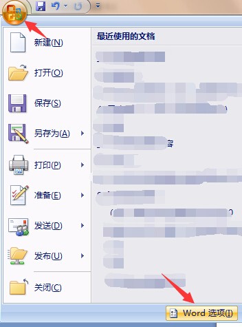 1、打开进入word2007,点击Office按钮,再点击“word选项”按钮,如图: