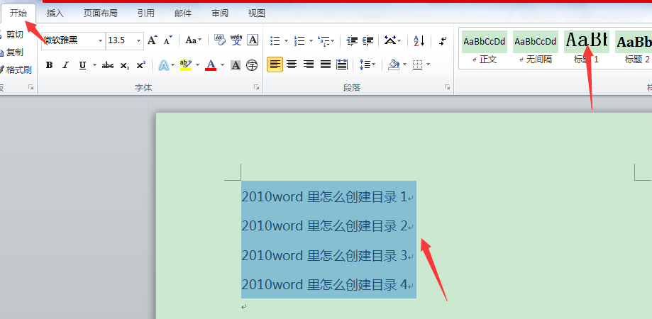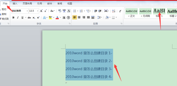 步骤2:点击开始菜单,选中标题内容,设置标题内容的格式,如标题1