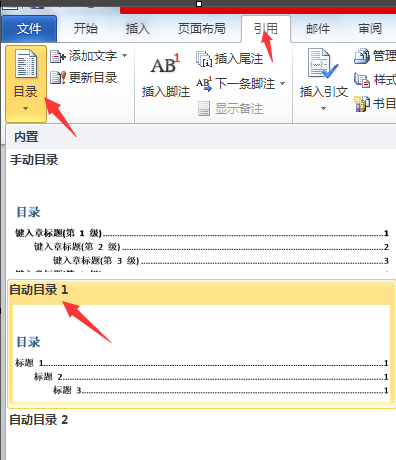 选择“自动目录1”即可;