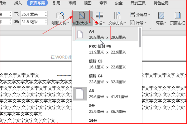 word中如何设置页面大小,如设置为A4纸