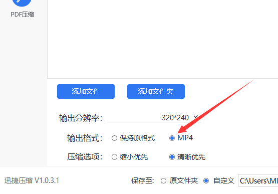 c、然后相信楼主知道将下面的输出格式更改为输出mp4格式,因为这样才能实现以mp4格式压缩。