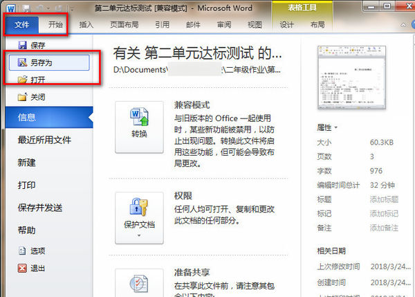 2、在文档上方工具栏中找到“文件”这个按钮。在“文件”的下方接着找到并点击“另存为”。