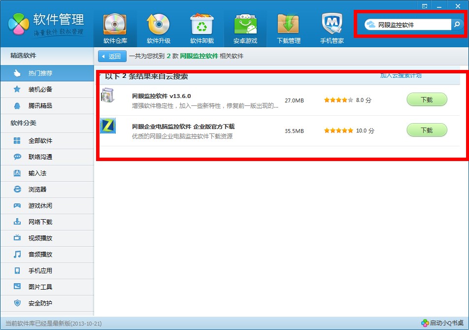 3,然后打开电脑管家——软件管理——软件仓库——右上角搜索【网眼监控软件】来找到这款软件,进行下载。