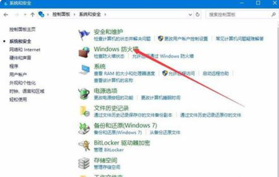 点击系统与安全项,进入后看见第二项是Windows防火墙选项,点击进入