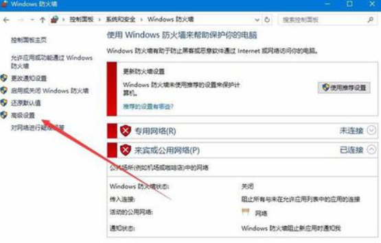 4、这时会打开Windows防火墙窗口,点击左侧边栏的“高级设置”快捷链接