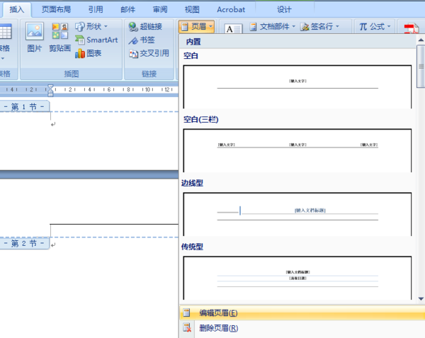 word文档中页眉怎么设置成一部分有一部分没有?