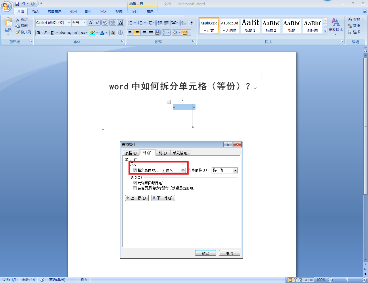 word2013表格拆分了单元格怎么算
