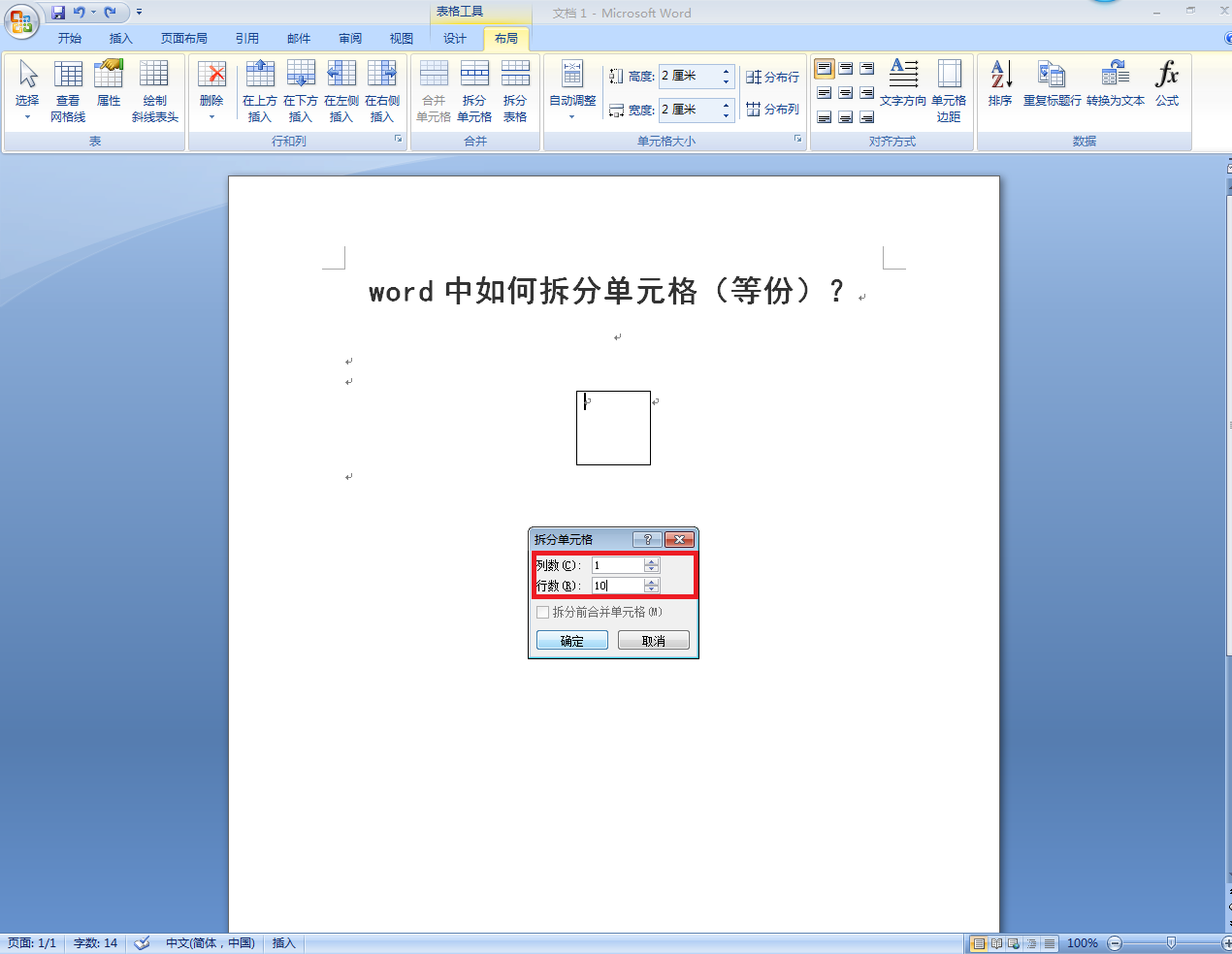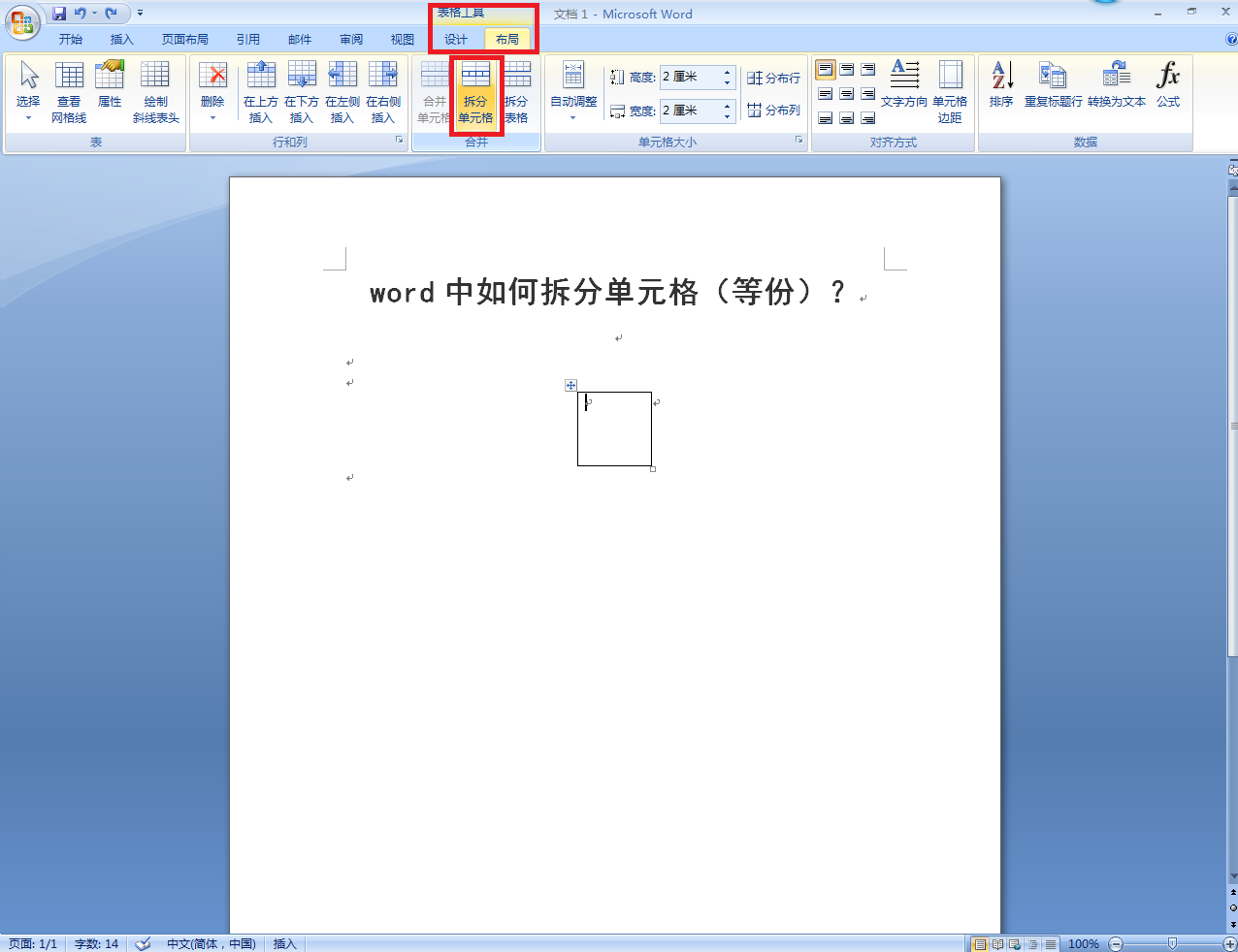 word中如何拆分单元格(等份)?