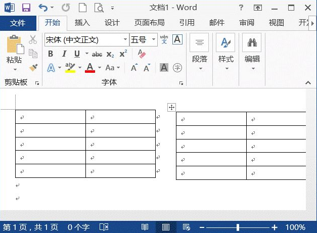 3、将鼠标指针移到第2个表格上,此时表格的左上角出现形状,将鼠标指针移到该标记上,待鼠标指针呈十字形状时,按住鼠标左键将其拖动到第1个表格的后面,如下图所示。