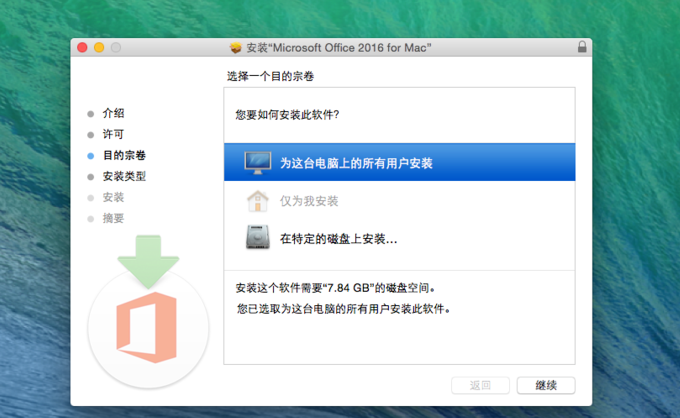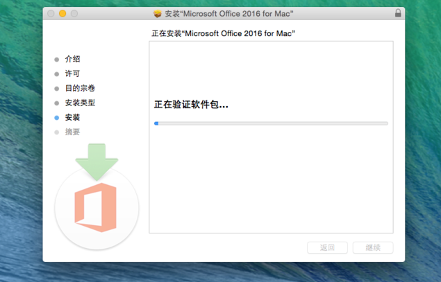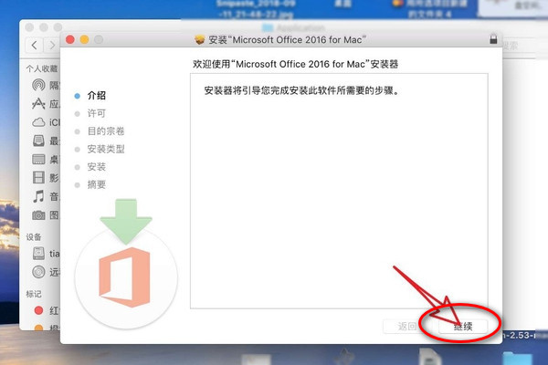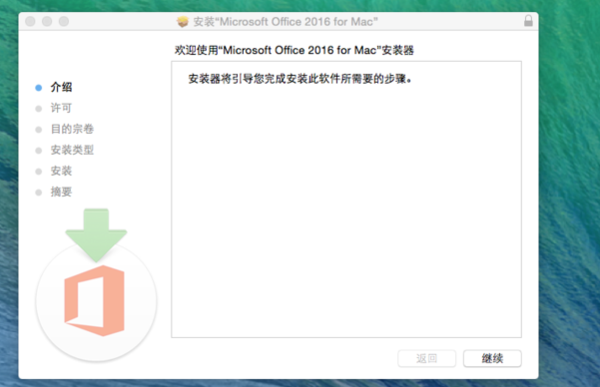 1.打开下载好的microsoft office 2016 installer.pkg 进行安装向导。如图所示。