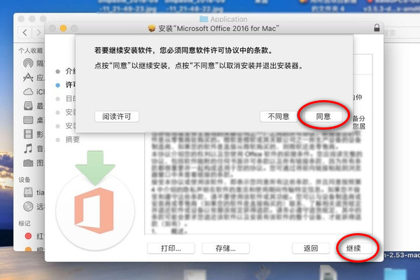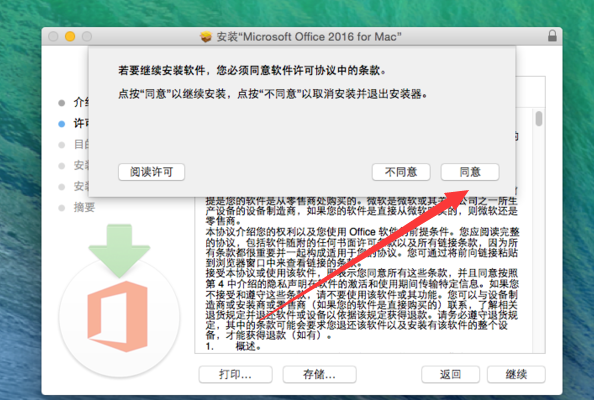 2.每个软件都有许可协,选择继续。弹出来是否同意他们的许可协议,我们选择同意。如图所示。