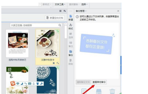 4、进入页面后,点击“查看其他备份“,WPS文档一般都自带一个自动保存功能。