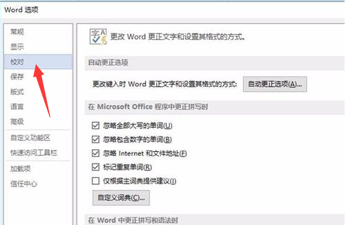 3、进行如下操作,在弹出界面中,鼠标左键单击选中校对按钮: