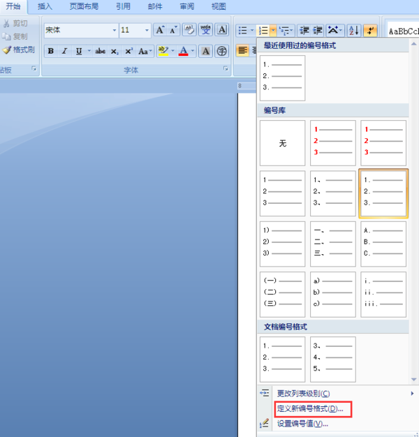 5、弹出定义新编号格式对话框,单击字体按钮;