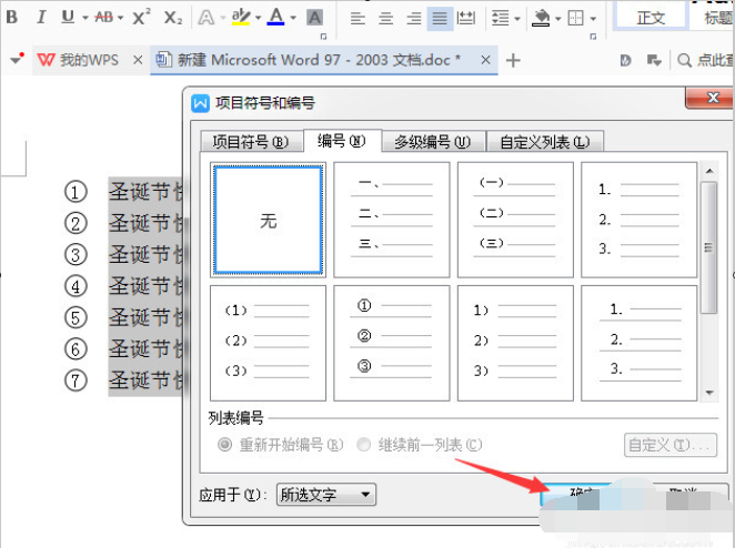 4、单击确定后,我们会发现选定的段落增加上了编号。