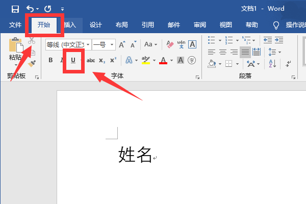 1、点击word顶部工具栏上的“开始”按钮,然后点击字母“U”下面带一条下划线的图标按钮: