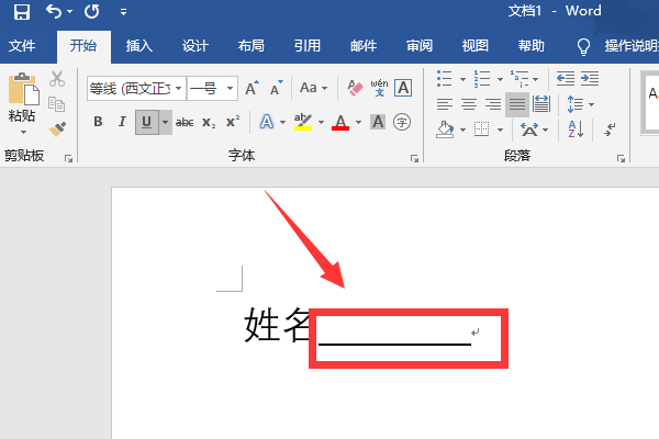 2、将光标放在需要下划线的地方,然后按下键盘上的空格键,这时下划线就会出来,下划线长度可以根据空格数量来控制: