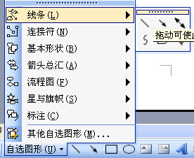 4.我们也可以利用“绘图”中的“自选图形”-->线条-->直线,来画直线。