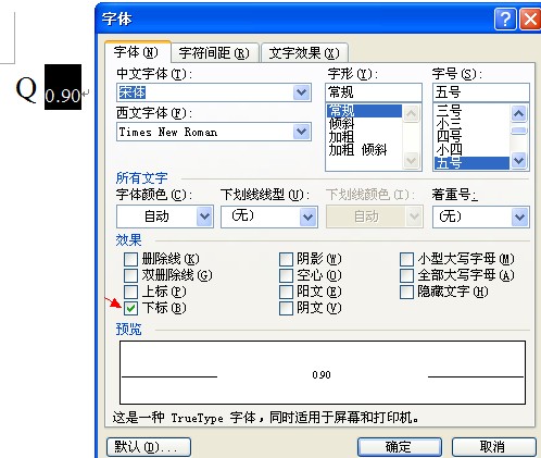 word里怎样输入下标,比如Q下标为0.90该怎么输入?