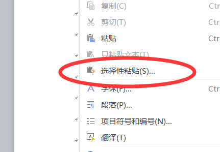 3、然后在需要粘贴的位置点击鼠标右键,在弹出的选项中点击“选择性粘贴”选项。