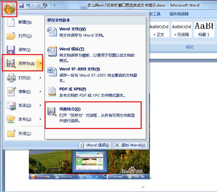 2、点击菜单栏的“开始”,然后在弹出菜单中选择“另存为”----->其他格式
