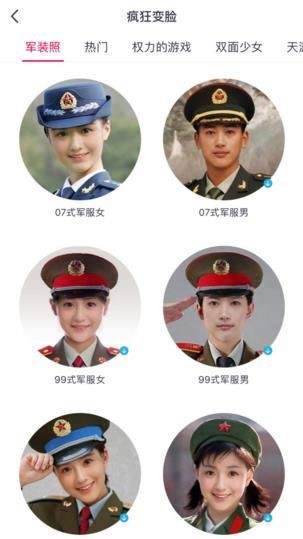 你可以使用手机天天P图的疯狂变脸来制作穿军装照片
