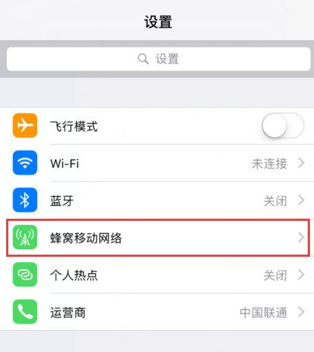 1、进入手机“设置”菜单,找到“蜂窝移动网络”选项;