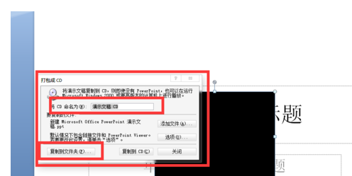 7.又弹出个窗口,这是打包CD的设置窗口,可以看到名称设置等,这里点击”复制到文件夹“。