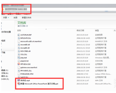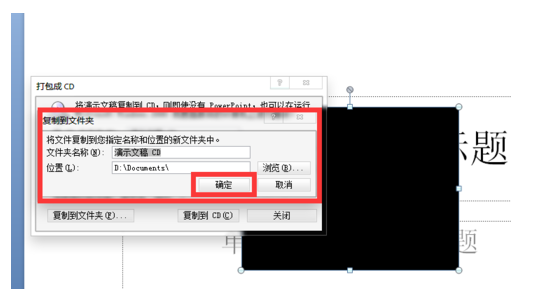 10.弹出复制进行窗口,窗口消失,就好了。然后打开刚才的输出路径。找到之前的名字”演示文稿CD“,双击进入,看到视频和PPT文件都在这,这样只要复制这个文件夹,到其他地方,就可以播放这个PPT了。