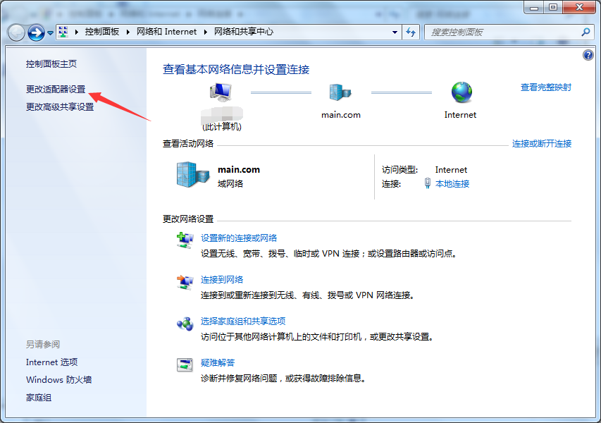 查看网卡配置点击图中箭头所指,更改适配器设置。