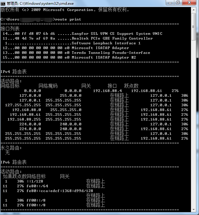 第一步:route delete 0.0.0.0 ::删除所有的0.0.0.0的路由