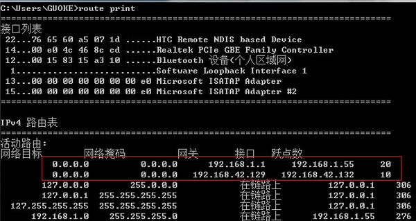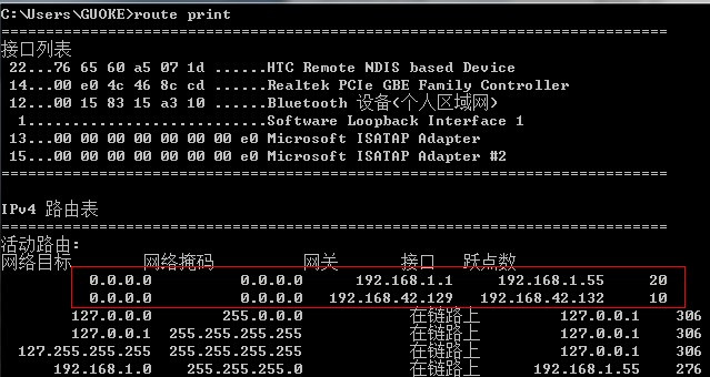 这里我们要用到静态路由命令,原理是强制计算机在访问某些地址时通过规定的网卡访问。