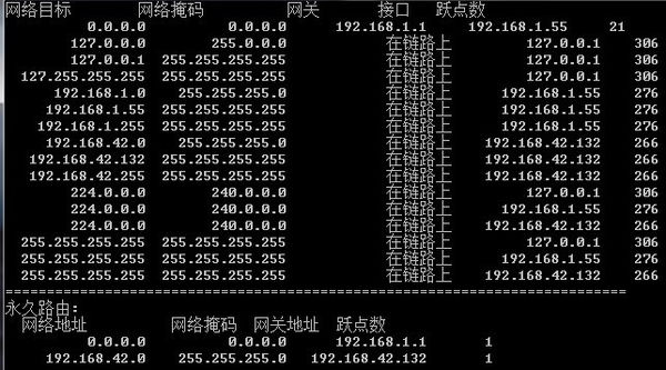 执行后,永久路由就多了二项了,如下图所示: