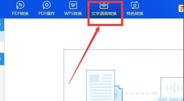 1、打开PDF转化器软件,连续点击两次进入工具操作功能页面,在功能页面的顶端找到工具栏目,鼠标点击【文字语音转换】,第一步就完成,如下图所示。