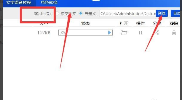 3、设置文件转换完成的保存位置,在转跳页面中找到【输出目录】功能,点击会出现两个选择可供选择,一个是原文件夹和还有一个本地的自定义文件夹,可以依据个人需要来进行选择调整。如下图所示。