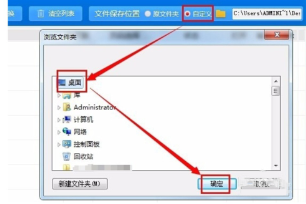 3、为转换后的word文档设置一个保存位置。单击“自定义”——设置位置——单击“确定”按钮。