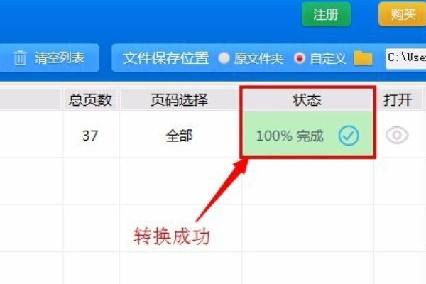 5、转换完成时,状态栏处会有提示,转换状态显示为100%。
