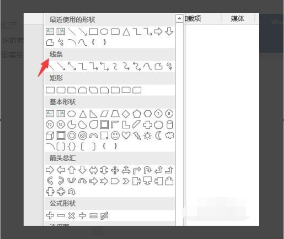单击插入----形状按钮,弹出下拉选项中有各种绘图工具,如图所示。