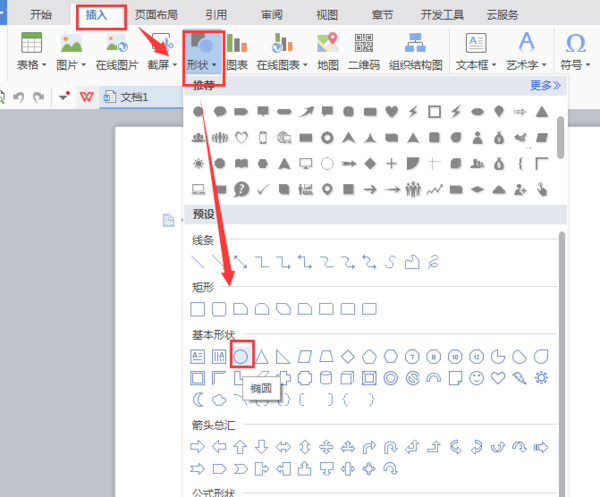 2、接着选择导航栏中的插入,然后选择形状,这时候能看到这里有非常多的形状,直接在这里进行编辑即可。