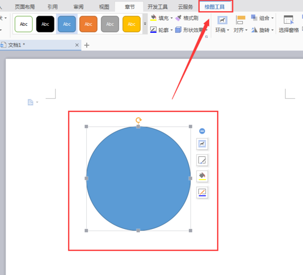 3.然后就可以使用绘图工具里面最常用的填充颜色、调大小、设置一些效果等等