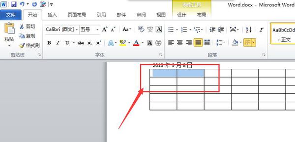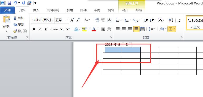 1、打开Word2010文档页面,选择表格中需要合并的两个或两个以上的单元格。