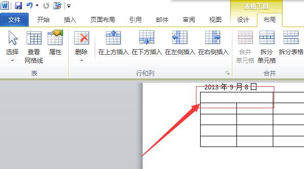 2.点击“布局”选项卡,然后点击“合并单元格”命令即可。