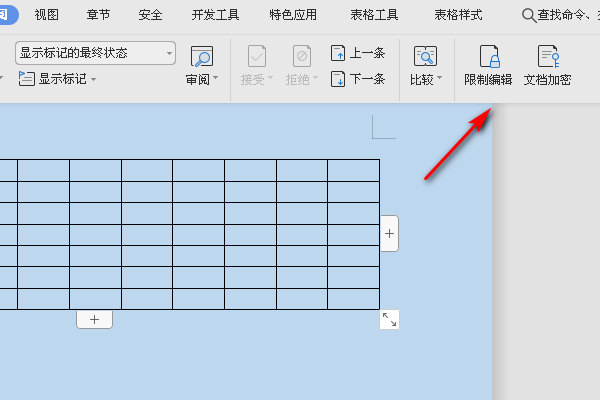 3、进入审阅的项目里之后,在里面找到限制编辑,点击进入。