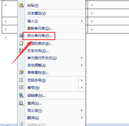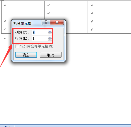 1、在word合并上下单元个的基础上对合并的单元格进行拆分,如图所示;
