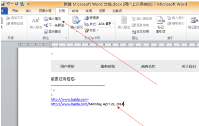 2、为正文中的部分内容插入尾注。组合键为Alt+Ctrl+D。