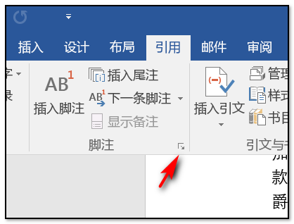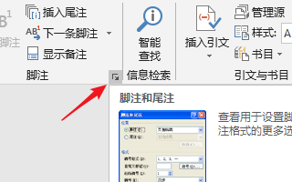 3、点击【引用】下【脚注和尾注】设置项启动按钮。