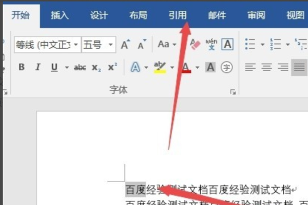 3、编辑好任意文字内容以后,在上方的菜单栏中找到并点击“引用”的命令;