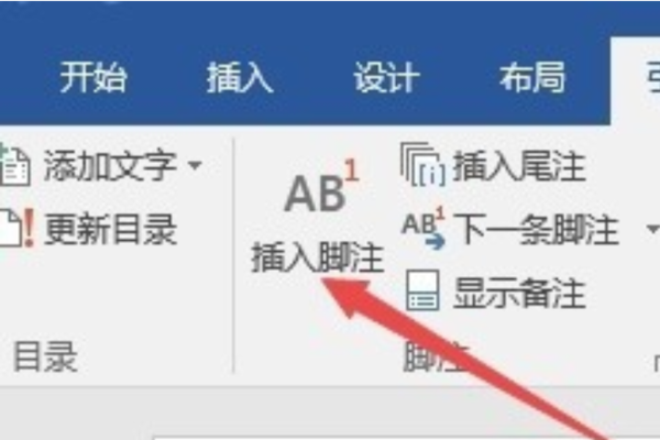 步骤二:将光标放在要插入的文本后面,选择【引用】-【插入脚注】。