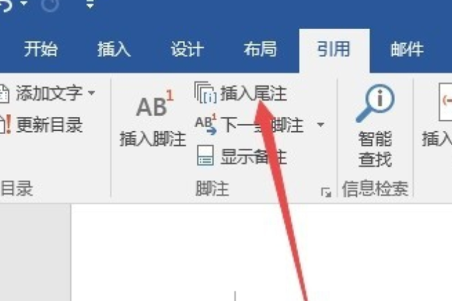 步骤四:尾注也是一样的,光标指向要插入尾注的位置上,选择插入尾注。